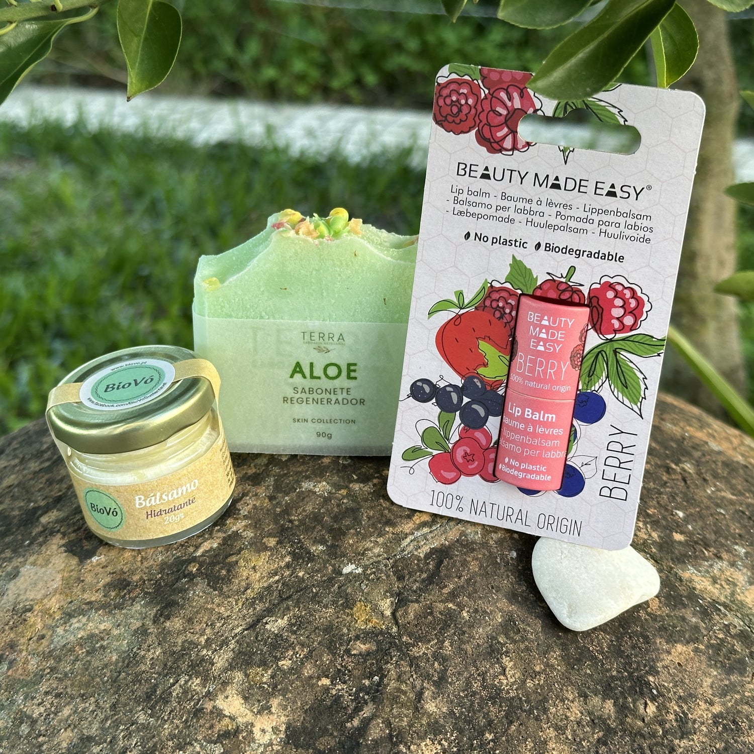 - Sabonete para o banho (Aloe vera, calêndula, silk ou lemongrass)