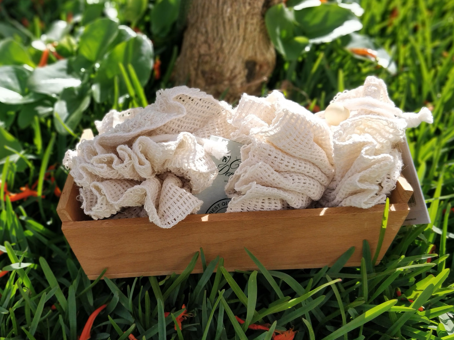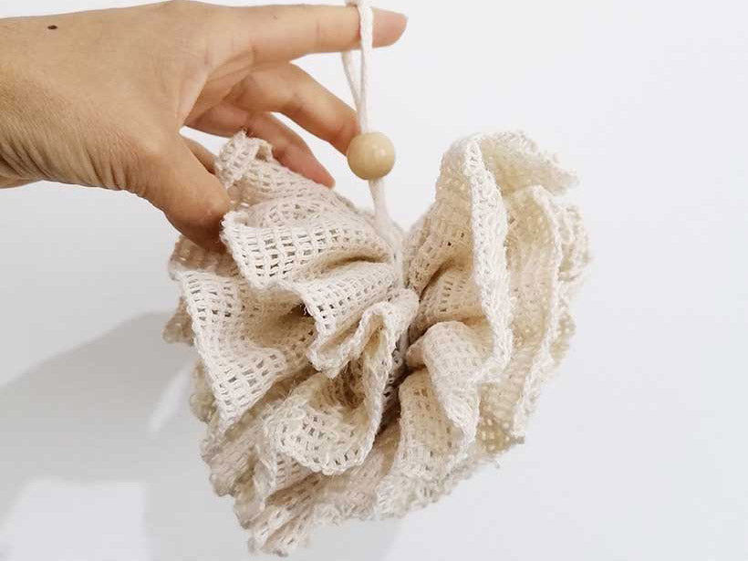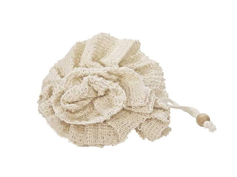 Puff de banho confeccionado com fio de sisal 100% natural. Tonifica a pele e ajuda na circulação. Graças à sua textura, faz uma esfoliação superficial na pele deixando-a macia e brilhante.